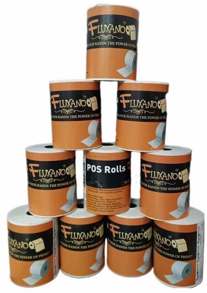 We offer Fluxano 79mm*57mm 55 GSM POS Thermal Paper Rolls suitable for all standard thermal & POS machines. Ideal for POS billing & receipt printing, this white paper roll measures 79mm (3 inch) in width and 40 meters in length. The smooth surface ensures clear printing. Securely packaged, this thermal POS paper is of 55 GSM quality. Perfect for suppliers and traders in need of reliable paper supplies.